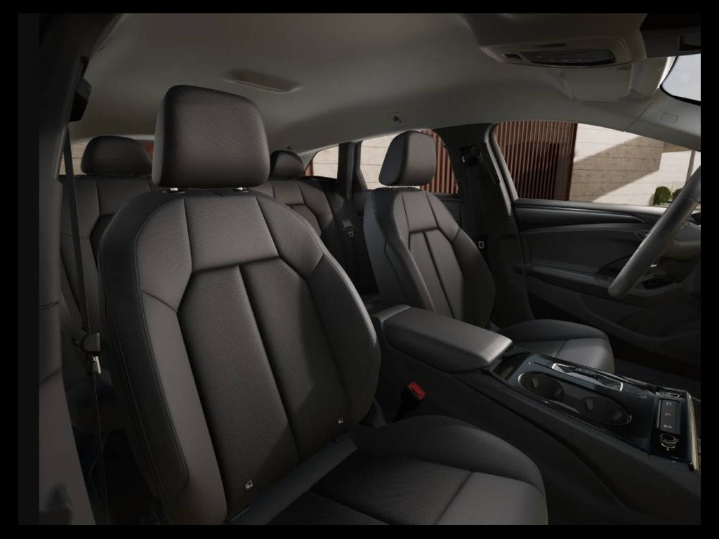 nabíjení; Příprava pro tažné zařízení; Roleta zavazadlového prostoru; Sada na opravu pneumatik; Samostatná světla pro denní svícení; Standardní sedadla vpředu v tkanině; Střešní spoiler; Svítící znak Audi, zadní; Tepelné čerpadlo; Tepelně-izolační a akustické zasklení; Uchycení dětské sedadčky i-Size; Upozornění na opuštění jízdního pruhu; Upozornění na rozptýlení a únavu; USB porty s nabíjecí funkcí pro přední a zadní sedadla; Vnější kliky dveří v barvě vozidla; Vnější zpětná zrcátka, elektricky; Vrchní část přístrojové desky v černé; Vyhřívání sedadel vpředu; Vysokonapětová baterie o kapacitě 83 kWh; Zadní lavice, nedělená, dělené sklopné; Čalounění stropu ve skálově šedé tkanině
